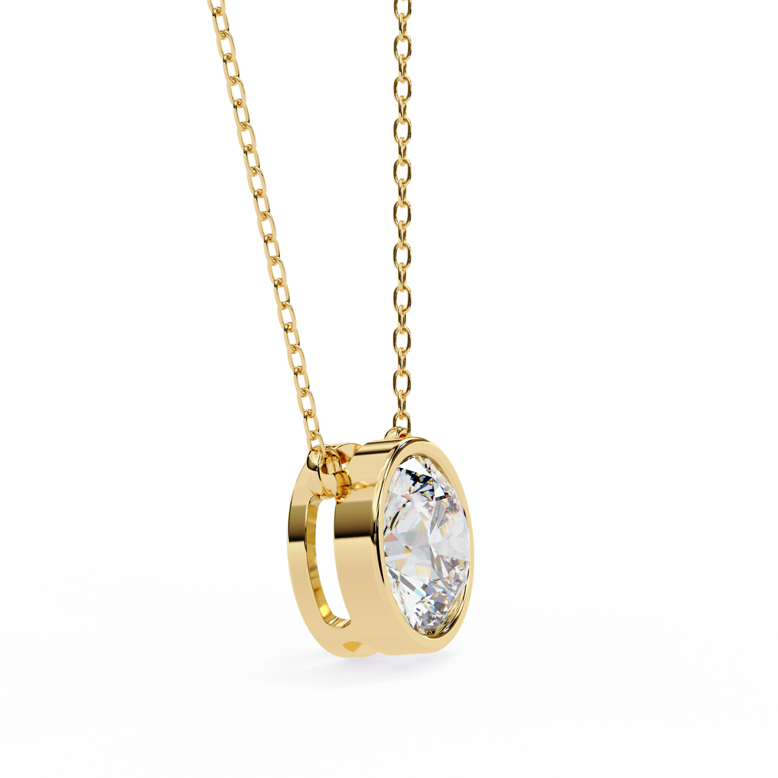 Add effortless elegance to your jewelry collection with this classic round diamond bezel pendant necklace. Featuring a brilliant round-cut diamond encased in a sleek bezel setting, this pendant radiates timeless beauty while offering a modern, minimal look. Suspended on a delicate chain, it’s the perfect piece for everyday sophistication or layering with other necklaces.
