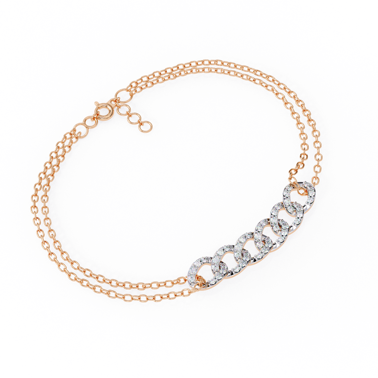 Symbolizing unity and everlasting connection, this diamond interlocking circle bracelet is a true statement of elegance and meaning. Featuring a series of diamond-studded interlinked circles set on a delicate dual-chain design, it blends modern sophistication with timeless sparkle.