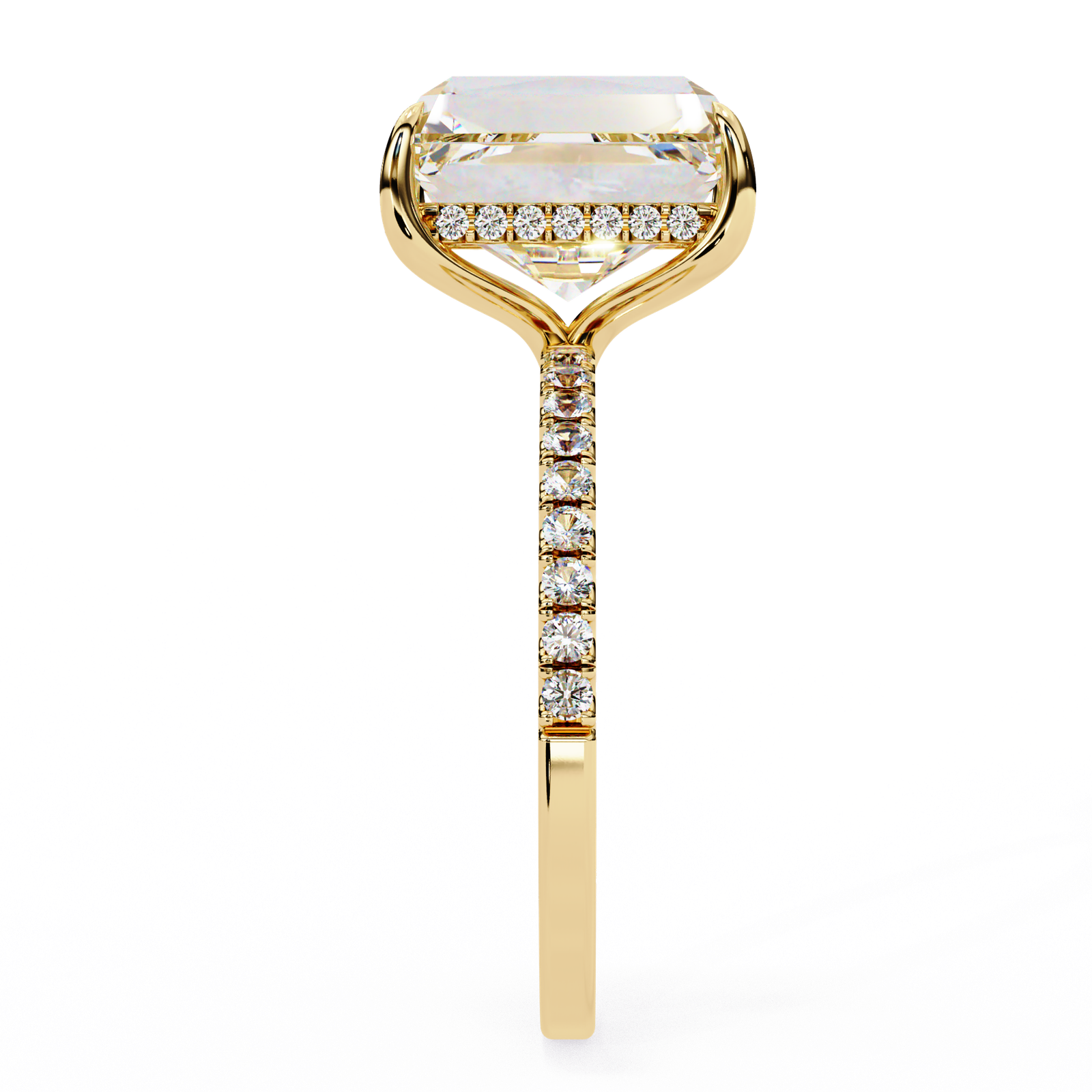 Center Stone: Emerald-Cut Diamond (Lab-Grown or Natural, customizable)