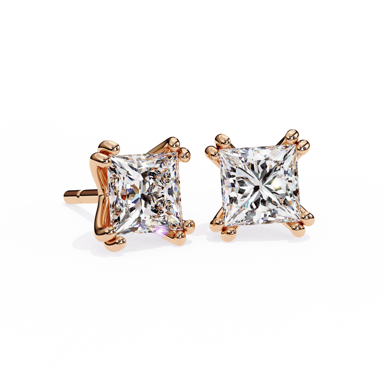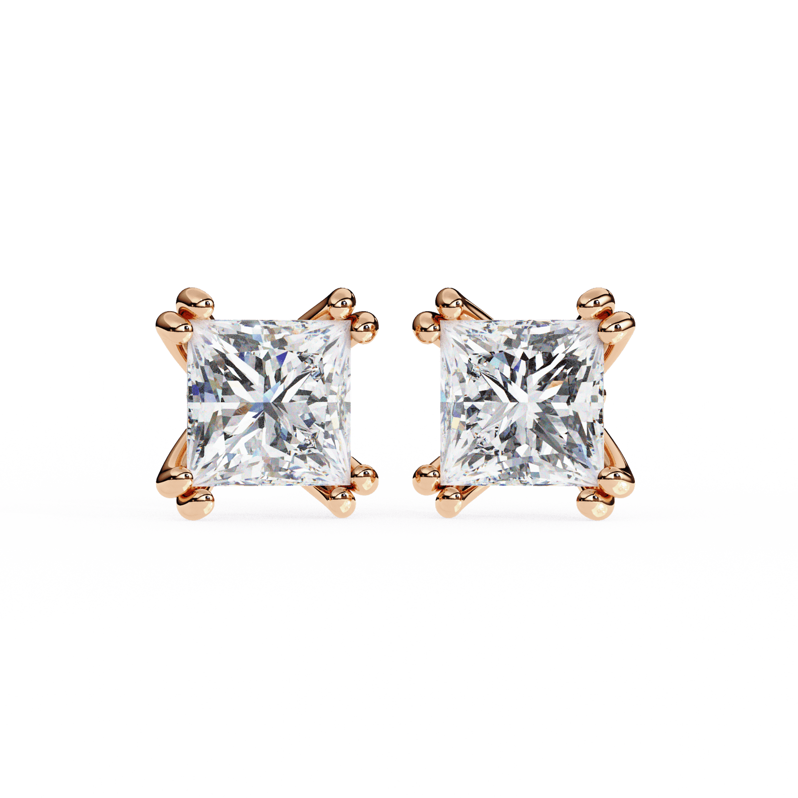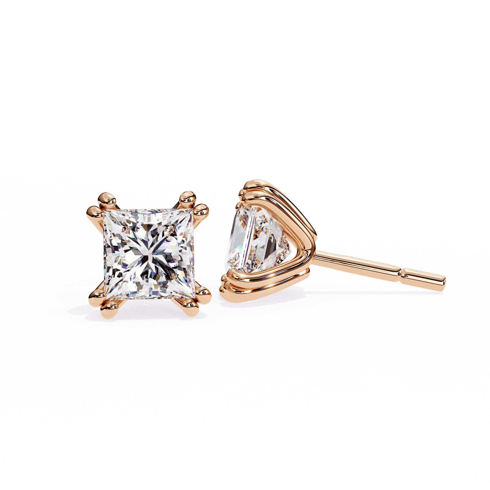 These exquisite princess-cut diamond stud earrings feature a classic 4-prong setting that ensures each diamond is securely held while maximizing its stunning brilliance. The sharp, angular shape of the princess cut adds modern sophistication, making these earrings a perfect choice for those who appreciate sleek and contemporary design. Whether for everyday elegance or special occasions, these diamonds are a timeless addition to any jewelry collection, offering a refined and sparkling touch to every outfit.