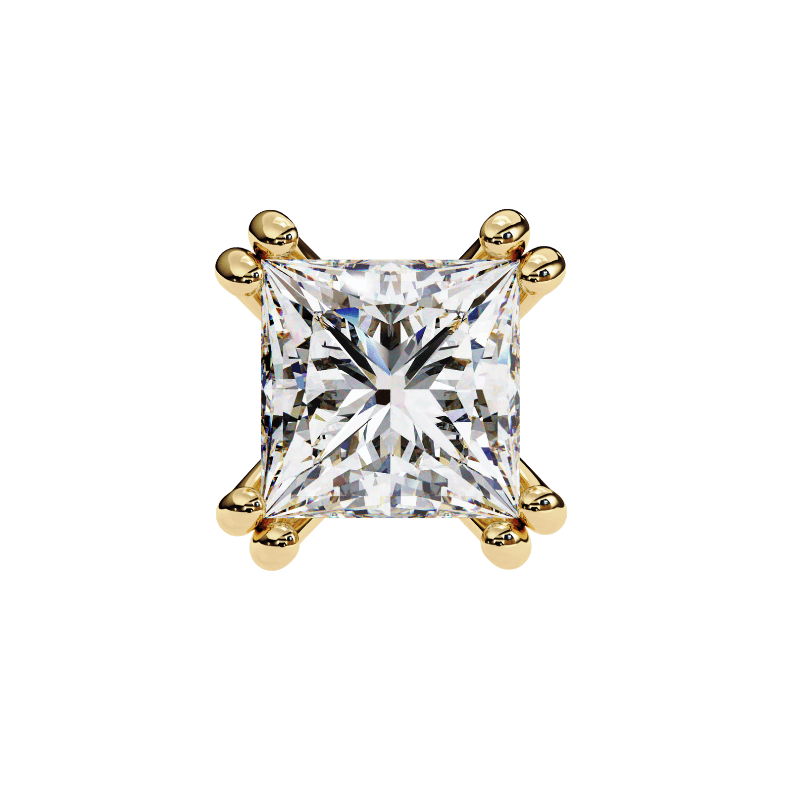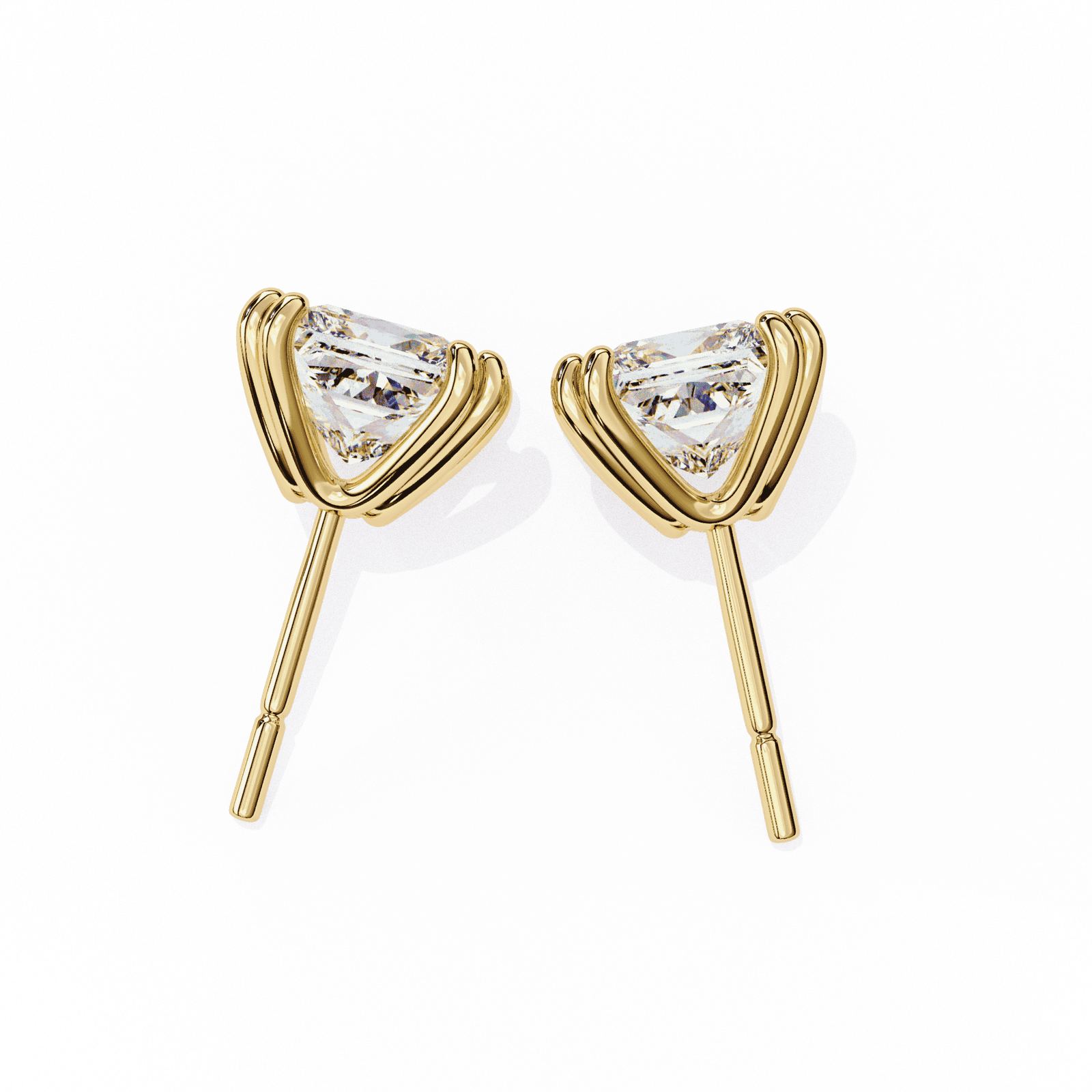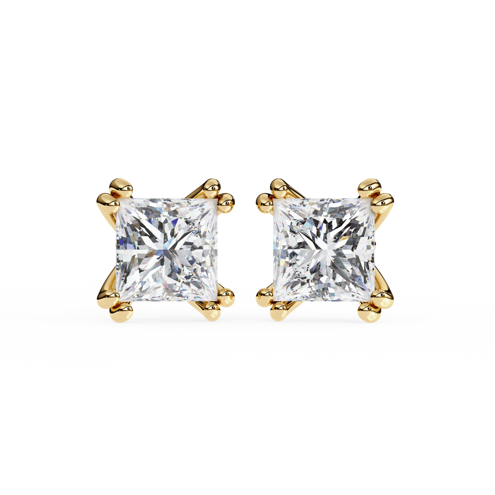 These exquisite princess-cut diamond stud earrings feature a classic 4-prong setting that ensures each diamond is securely held while maximizing its stunning brilliance. The sharp, angular shape of the princess cut adds modern sophistication, making these earrings a perfect choice for those who appreciate sleek and contemporary design. Whether for everyday elegance or special occasions, these diamonds are a timeless addition to any jewelry collection, offering a refined and sparkling touch to every outfit.