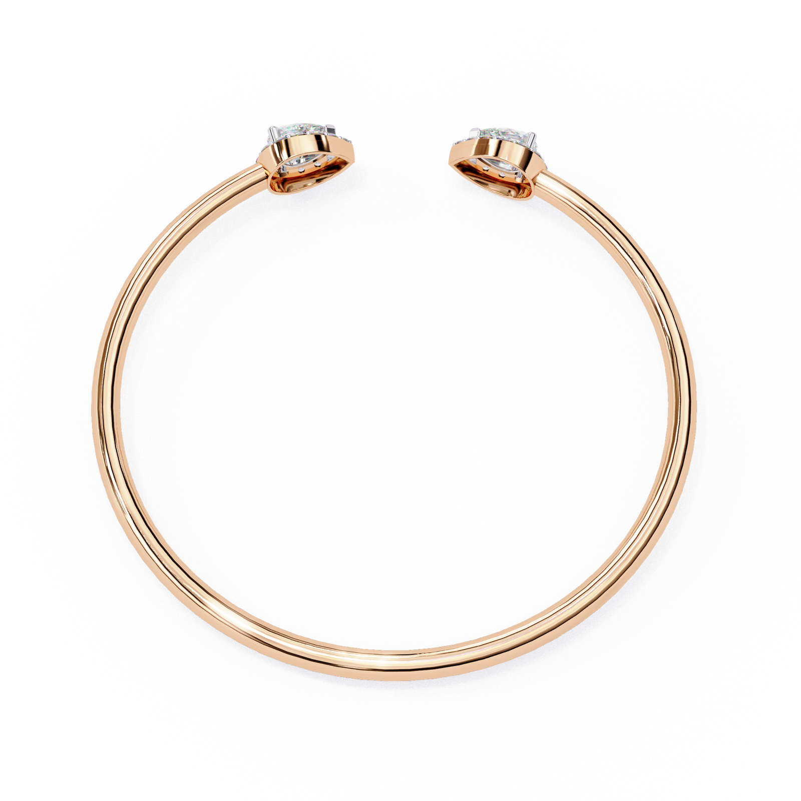 Modern sophistication meets timeless sparkle with this pear diamond open halo ring. Featuring two pear-shaped diamond clusters facing each other, each surrounded by a delicate halo of pavé diamonds, this ring creates a striking yet graceful look.