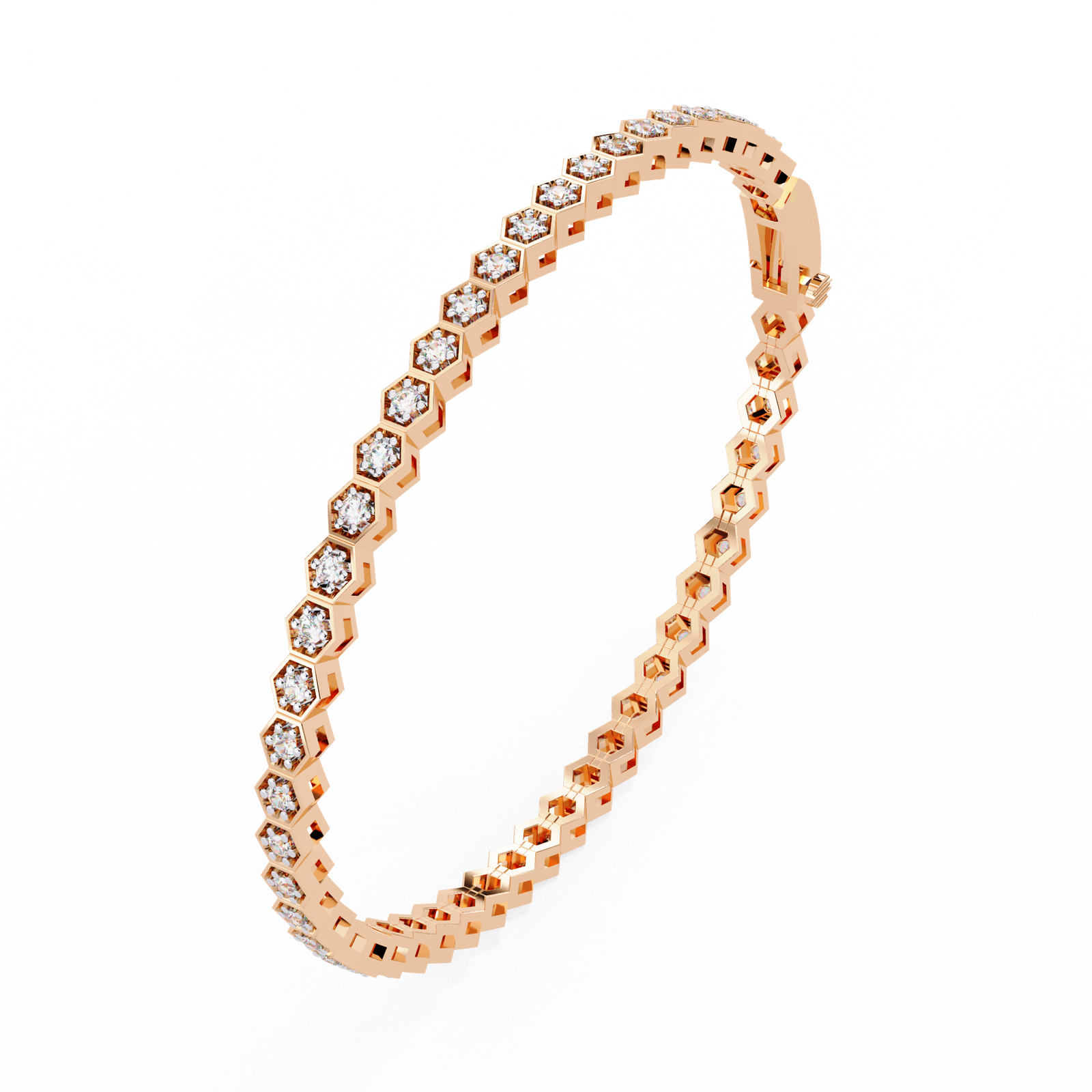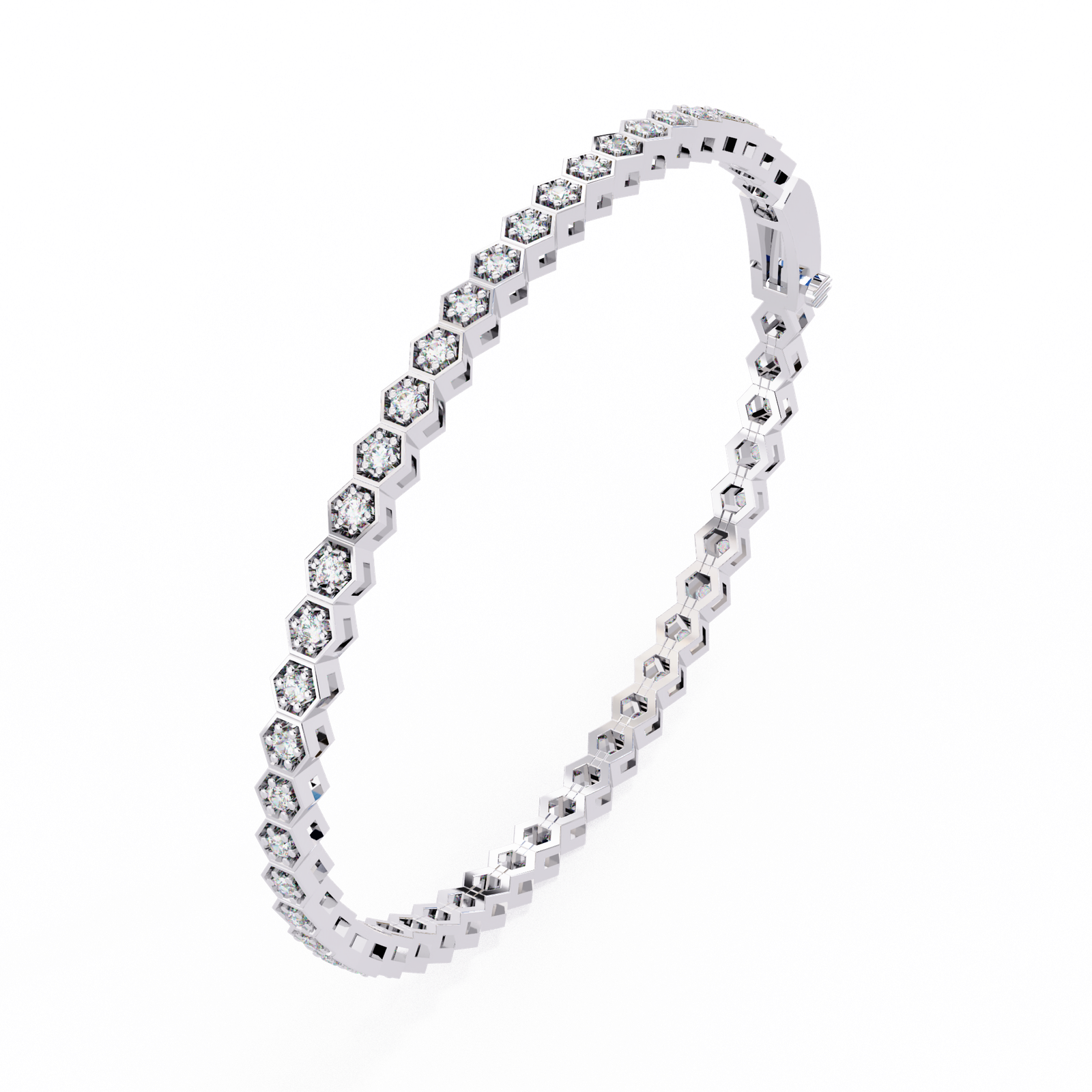 Redefine modern elegance with the Hexagon Diamond Tennis Bracelet. Each round-cut stone is uniquely framed in a bold hexagon setting, creating a geometric twist on the classic tennis bracelet. The sleek, polished design offers both brilliance and individuality, making it a standout accessory for any occasion.