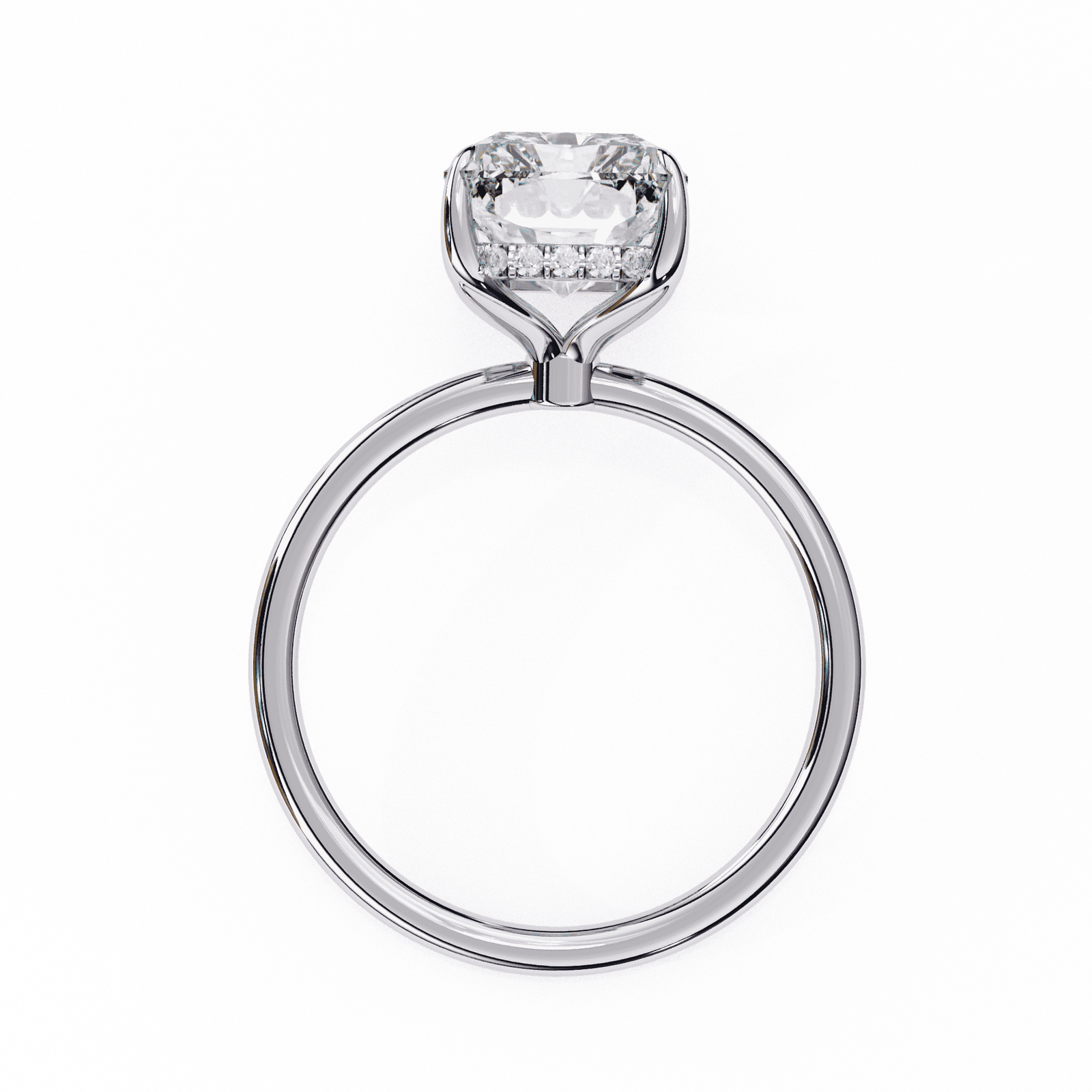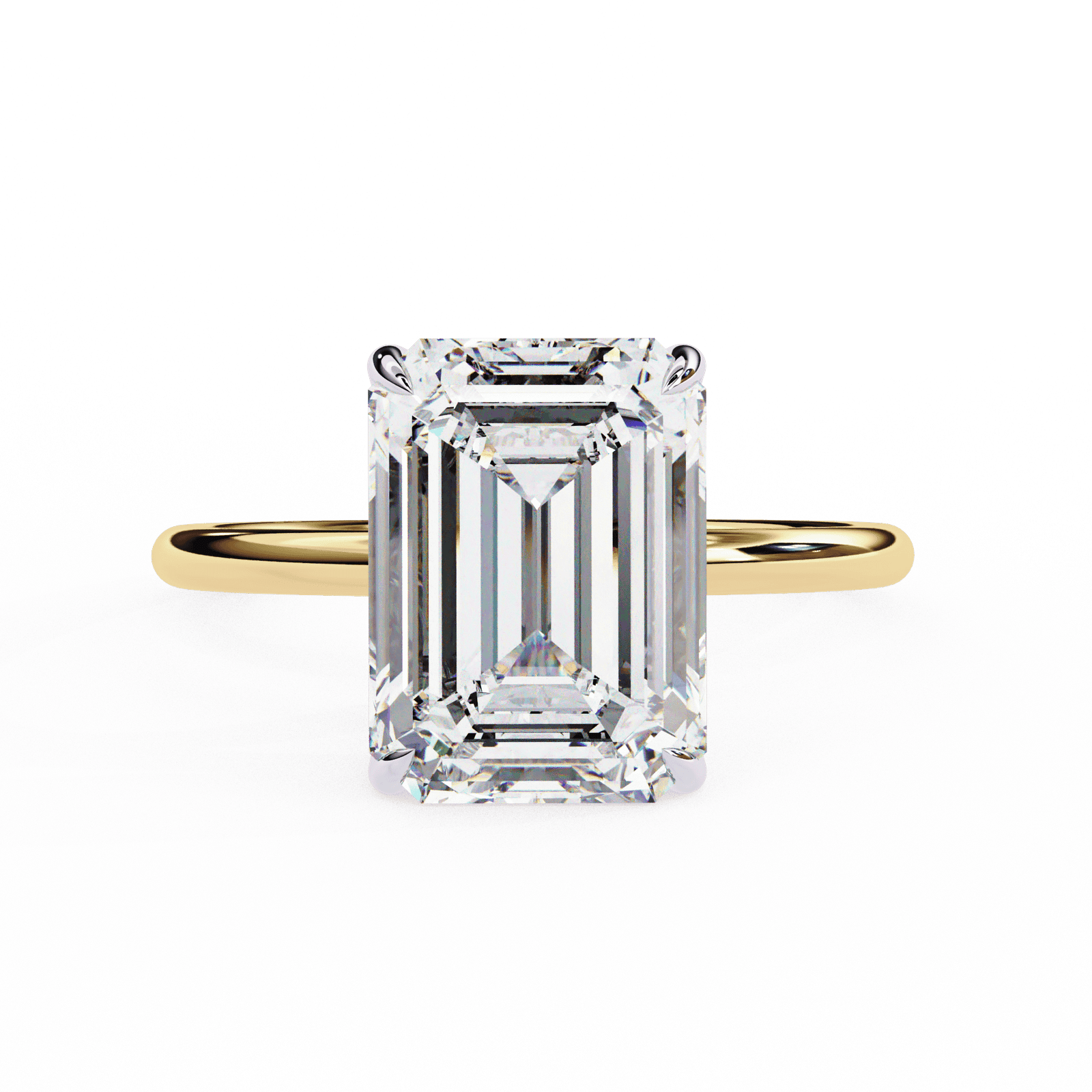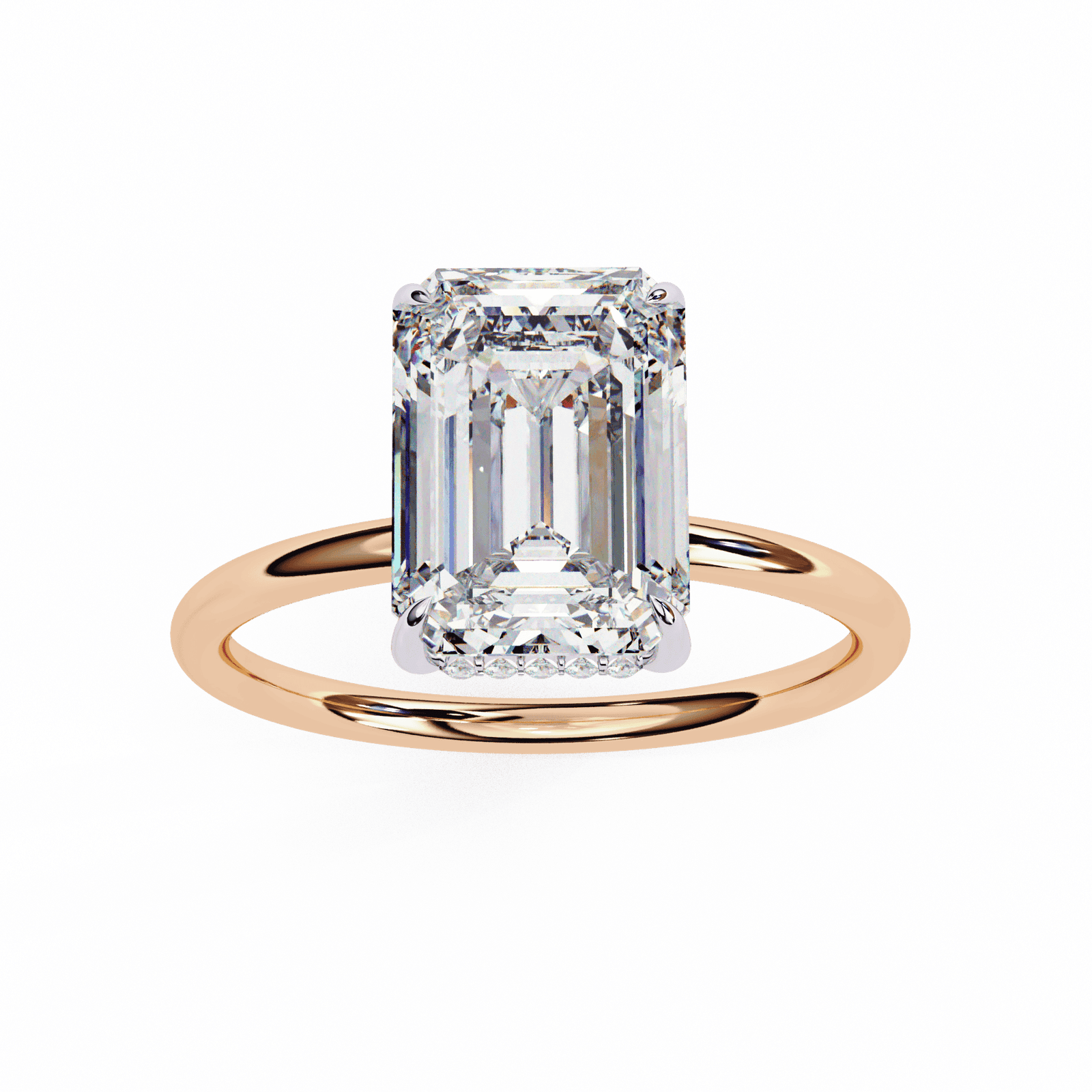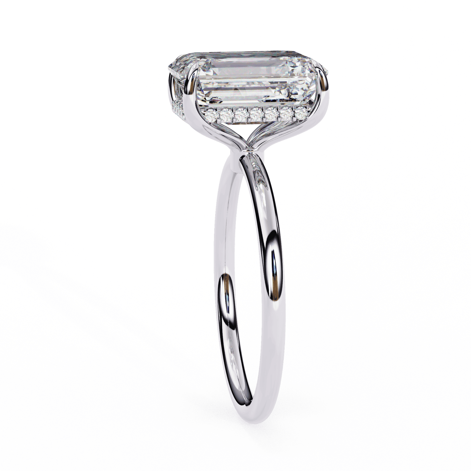 This emerald-cut diamond engagement ring showcases timeless elegance and understated sophistication. The elongated rectangular shape, complemented by step-cut facets, creates a hall-of-mirrors effect that highlights clarity and brilliance in a unique way. Unlike traditional brilliant cuts, the emerald cut offers a sleek, refined appearance, perfect for someone who values minimalism with a touch of glamour.