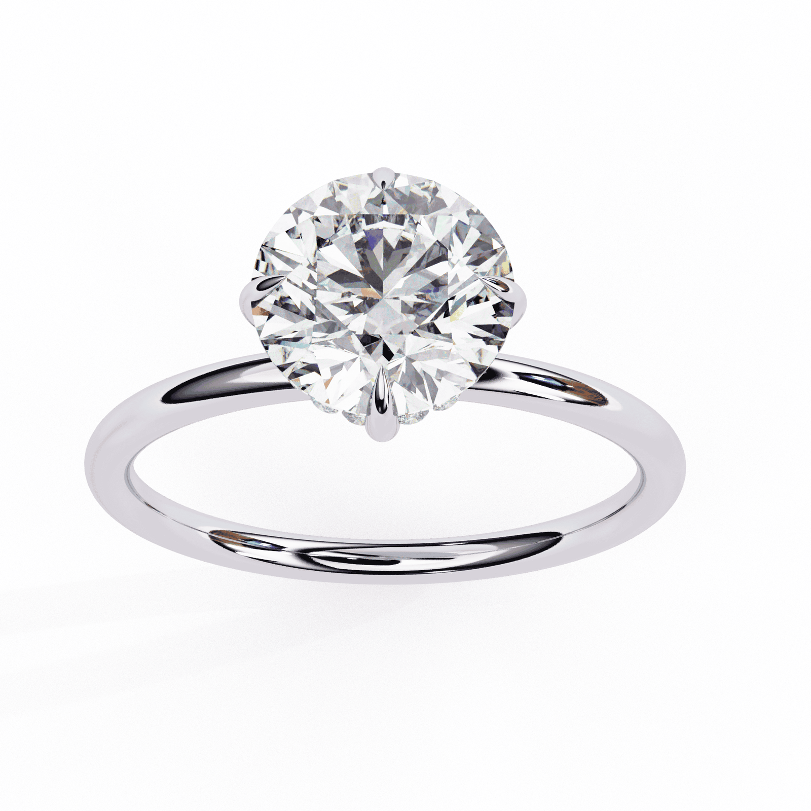 This round brilliant-cut diamond engagement ring embodies timeless beauty and unmatched brilliance. The round shape is the most popular diamond cut, designed to maximize sparkle through 58 precision-cut facets that reflect light in a stunning, fiery display.