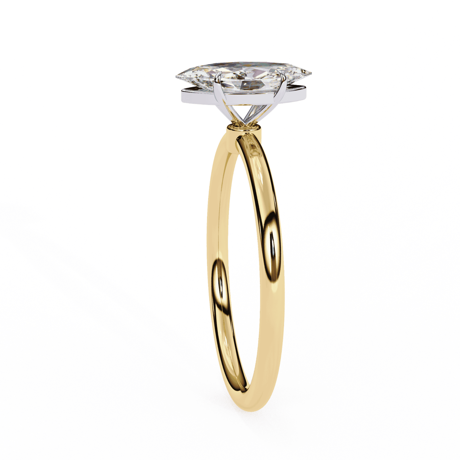 This marquise-cut diamond engagement ring is a true statement of elegance and sophistication. The marquise cut, with its elongated and pointed ends, creates an illusion of greater size, making the diamond appear larger than its actual carat weight. It also beautifully elongates the finger, offering a graceful, slender look.