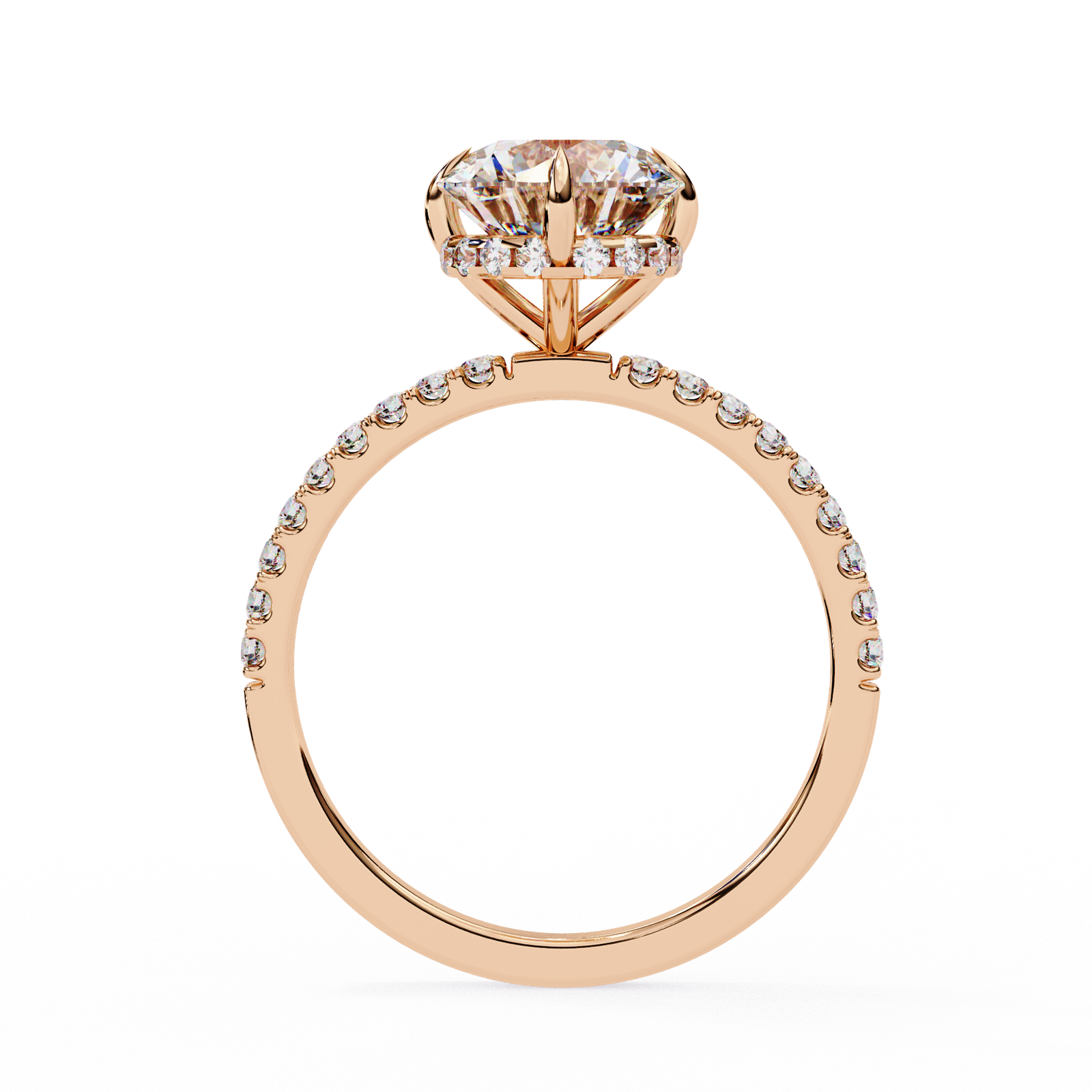 This exquisite engagement ring showcases a dazzling round brilliant cut diamond as its centerpiece, secured by a classic four-prong setting that maximizes brilliance and fire. The slender band is beautifully adorned with pavé-set diamonds, adding a continuous sparkle and elegant detail. Crafted in polished white gold (or platinum), this timeless design radiates sophistication and romance—perfect for celebrating a forever promise.