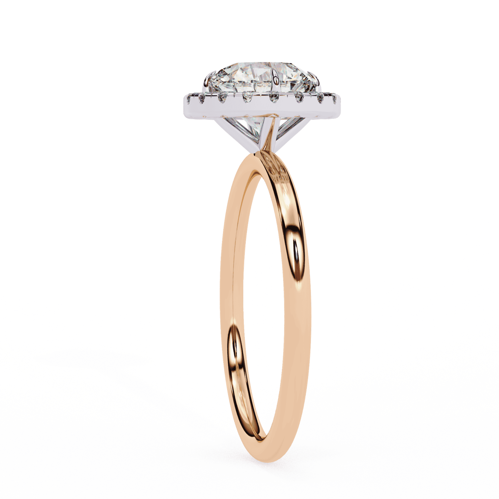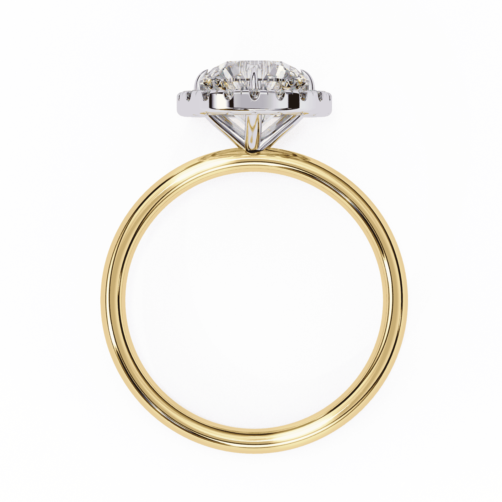 This glamorous engagement ring showcases a brilliant round-cut diamond encircled by a halo of pav?-set diamonds, amplifying its sparkle and brilliance. The halo design enhances the size and fire of the center stone, while the polished platinum or white gold band adds a touch of modern refinement. Timeless yet radiant, this ring is the perfect choice for those who desire a classic engagement ring with a dazzling, luxurious twist.