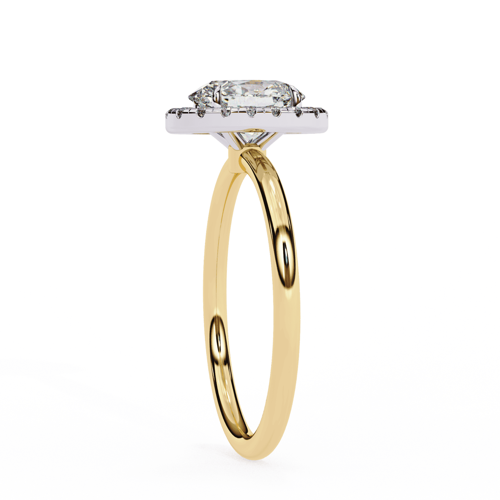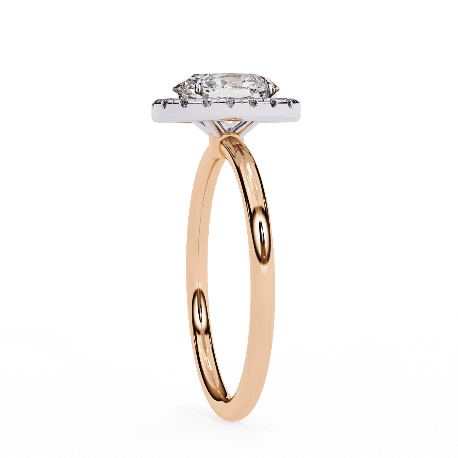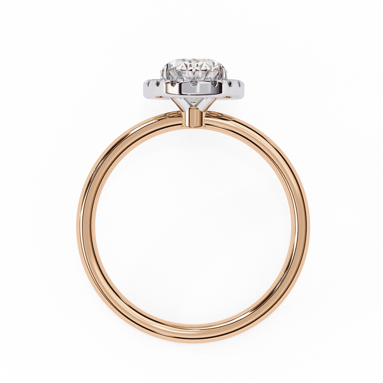 Timeless elegance meets modern brilliance in this oval-cut diamond halo engagement ring. The elongated oval center stone, beloved for its graceful symmetry and flattering shape, is encircled by a radiant halo of pav?-set diamonds that amplify its sparkle. Set upon a sleek and polished platinum or white gold band, this design exudes sophistication while offering a touch of contemporary charm. Perfect for those who seek both tradition and distinction, this ring symbolizes enduring love and refined beauty.