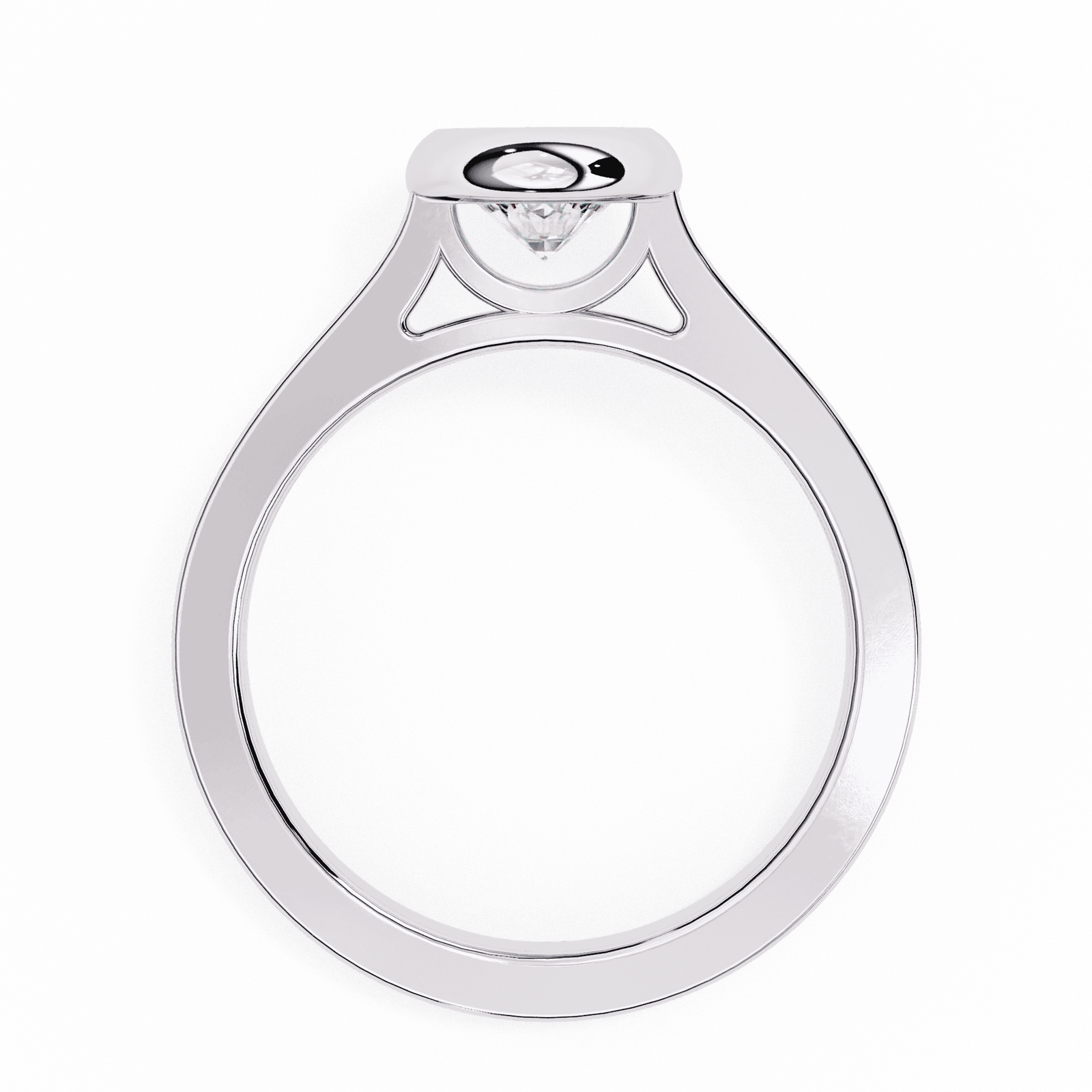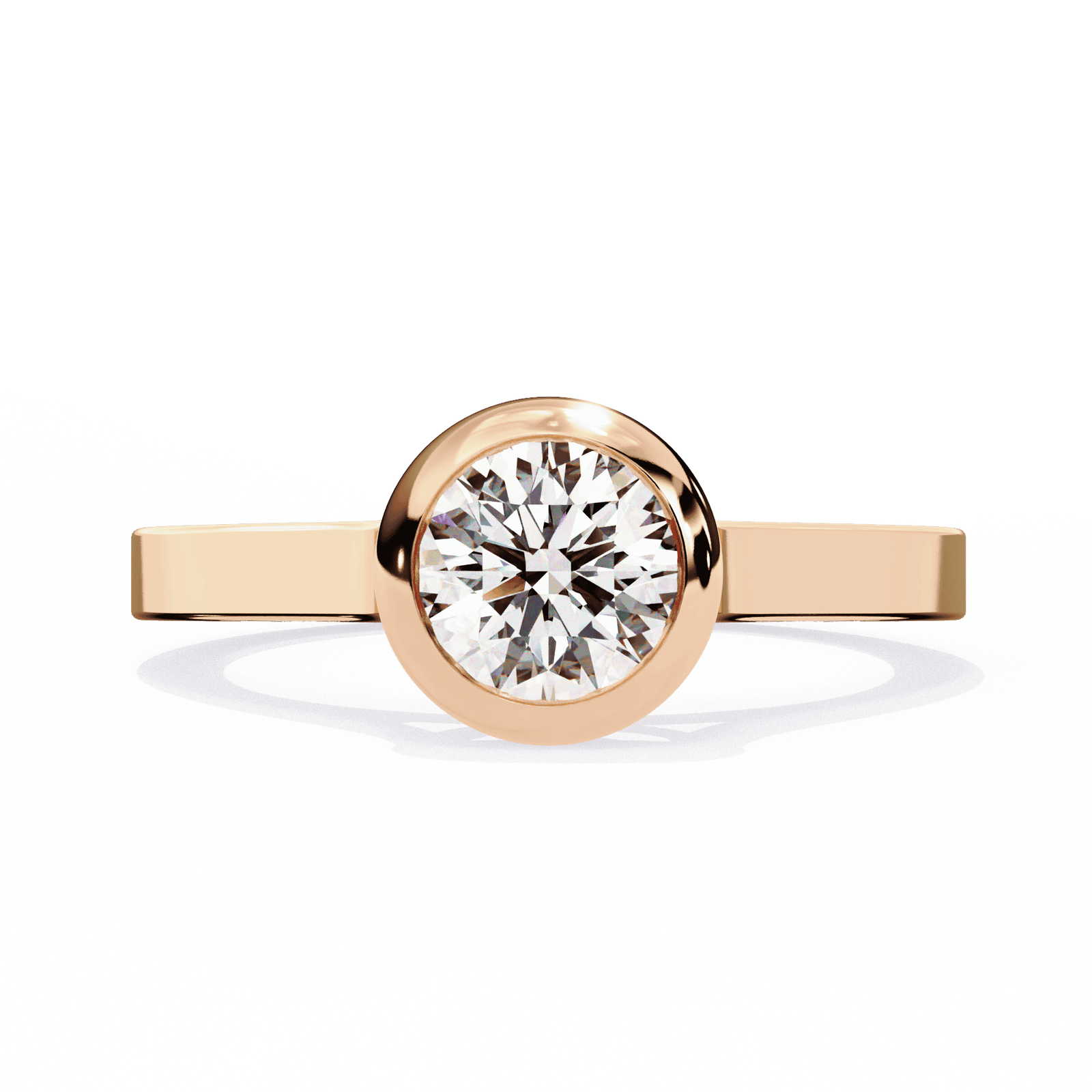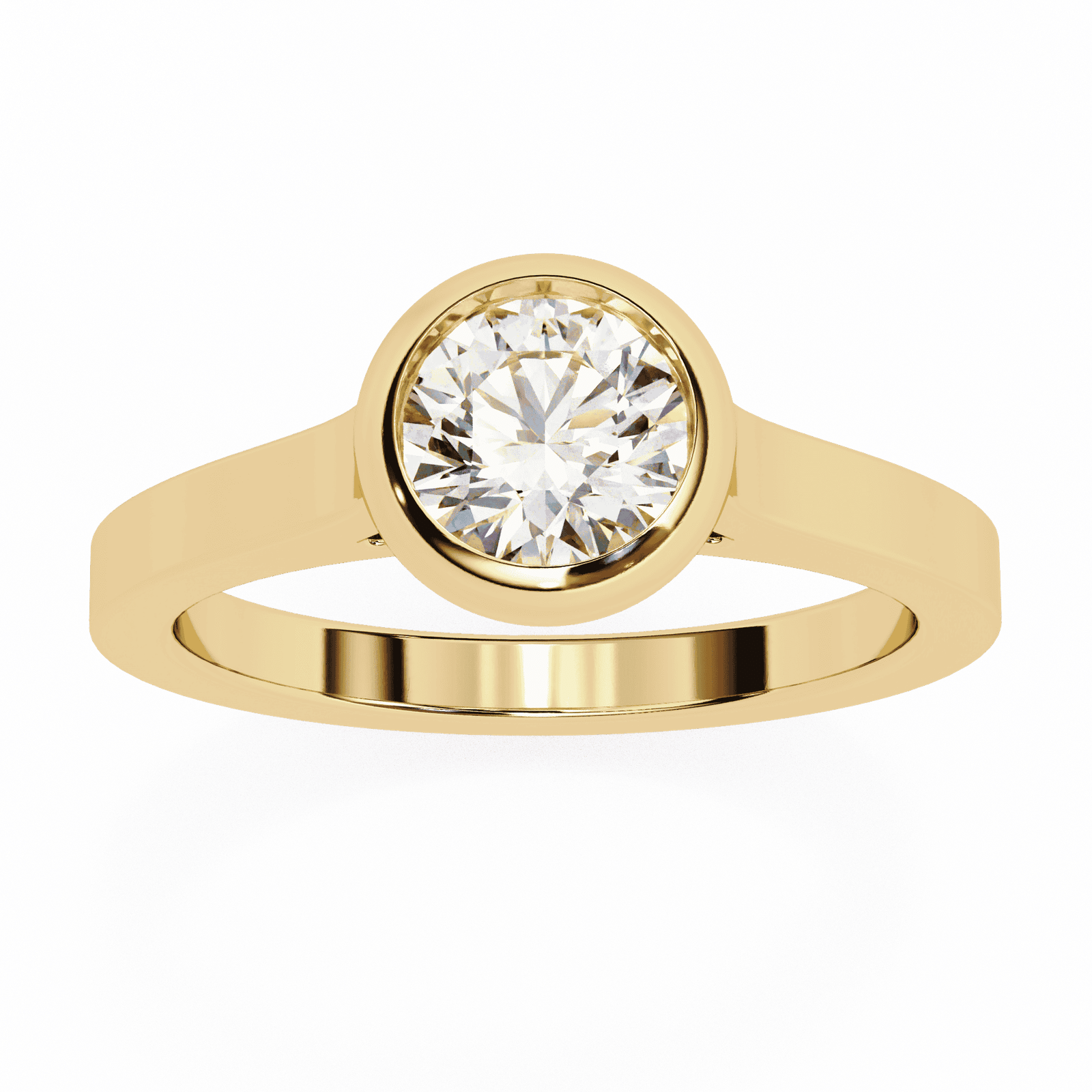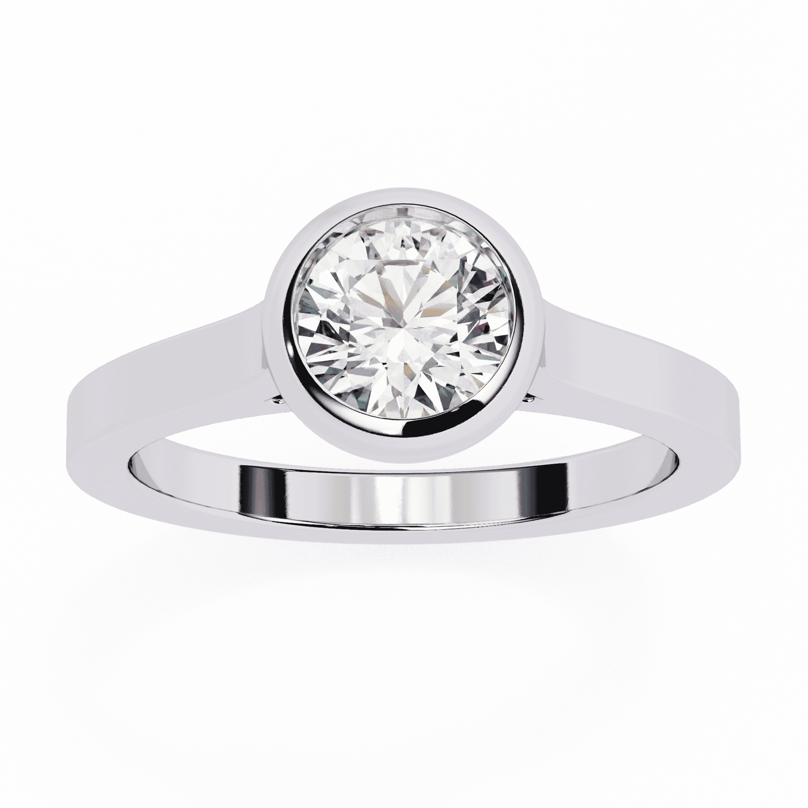 Modern minimalism meets timeless brilliance in this bezel-set round diamond ring. The radiant round-cut diamond is securely embraced by a polished metal bezel, offering both protection and a sleek contemporary look. The smooth band enhances the clean lines of the design, while the bezel setting allows the diamond to sparkle with understated elegance. Perfect for those who value simplicity, durability, and refined sophistication, this ring is as practical as it is breathtaking.