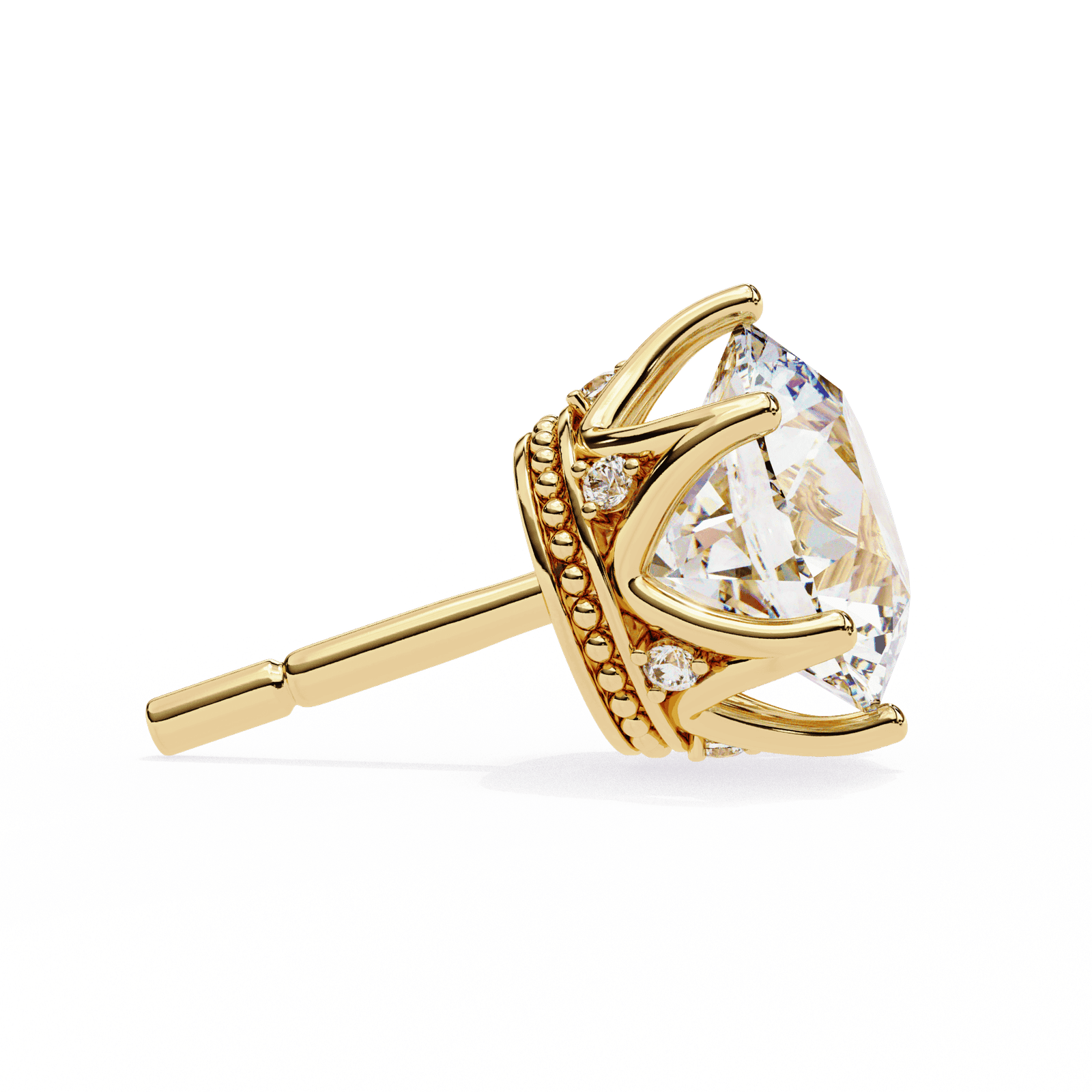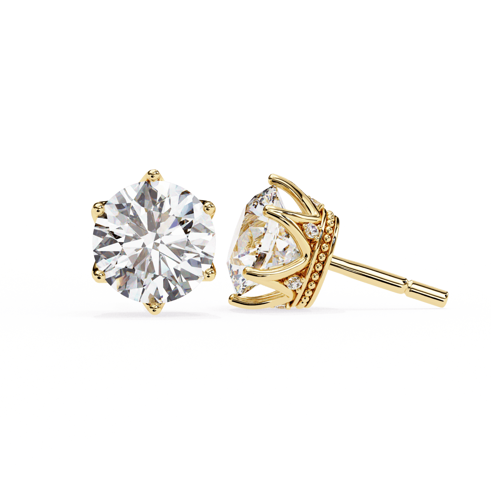 Experience the perfect blend of elegance and artistry with these Vintage-Inspired Round Diamond Stud Earrings. Featuring a brilliant round-cut diamond set in a secure six-prong setting, these studs showcase a beautifully detailed gallery with delicate milgrain and pav? accents for an added touch of sophistication. Crafted in premium white gold or platinum, these earrings are ideal for those who appreciate timeless beauty with a vintage flair.
