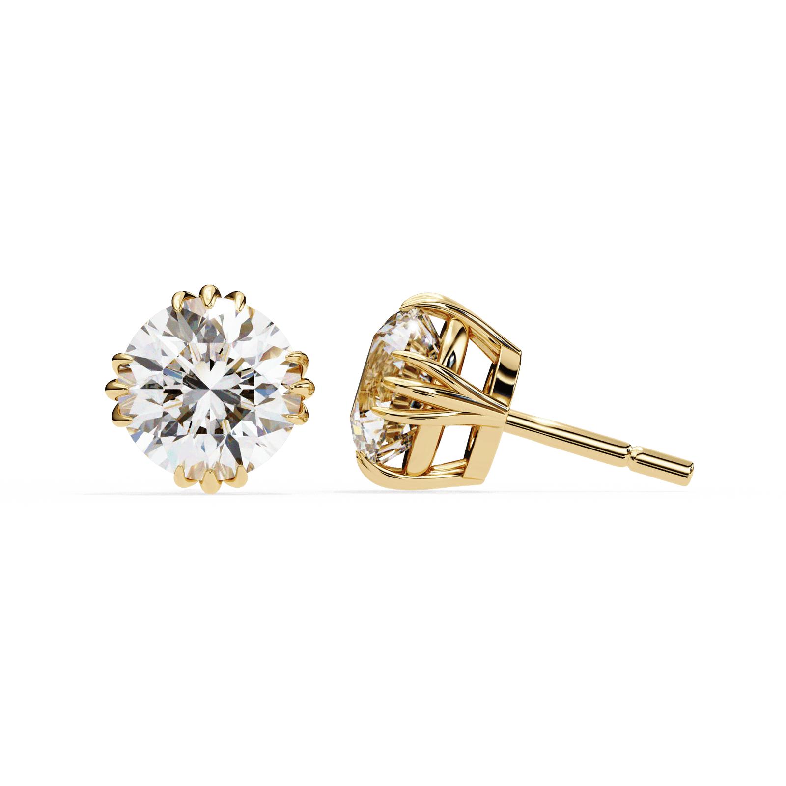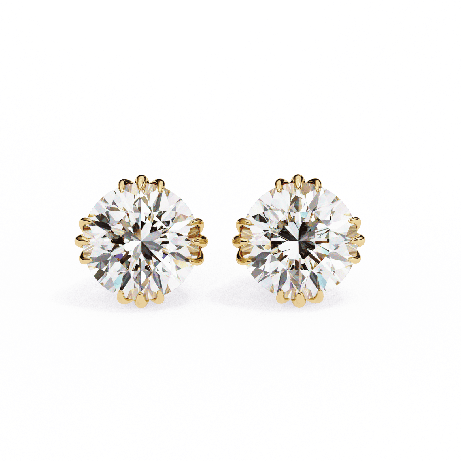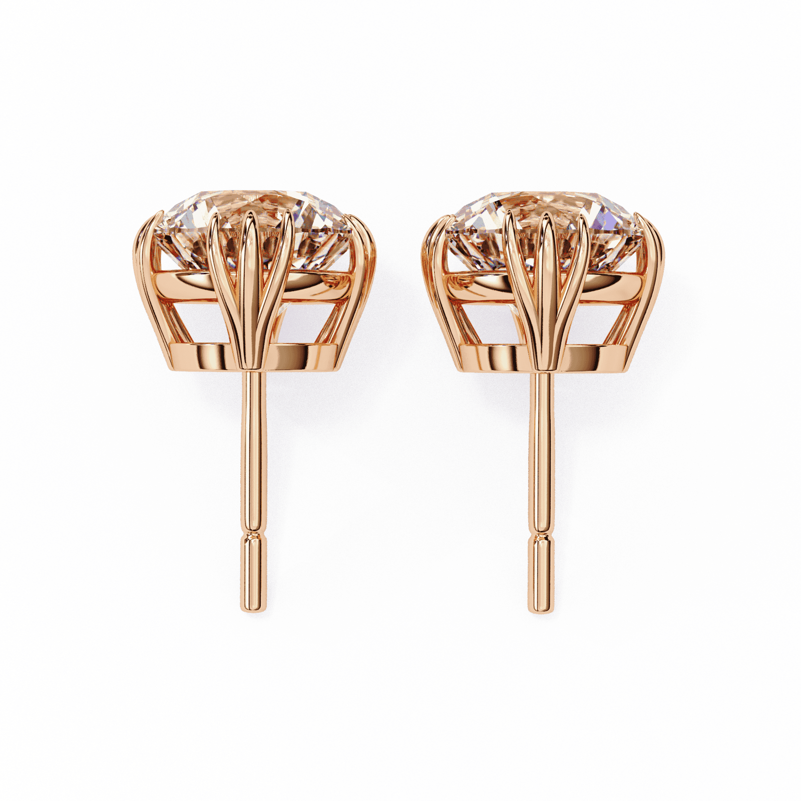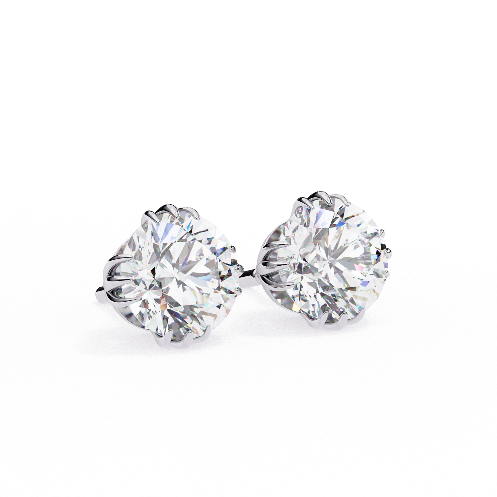 Embrace nature-inspired elegance with these Round Diamond Stud Earrings featuring a delicate lotus-style setting. The round brilliant-cut diamonds are secured by petal-like prongs, adding an artistic and graceful touch to the classic stud design. Expertly crafted in luxurious white gold or platinum, these earrings offer a unique blend of sophistication and creativity?perfect for both everyday wear and special occasions.