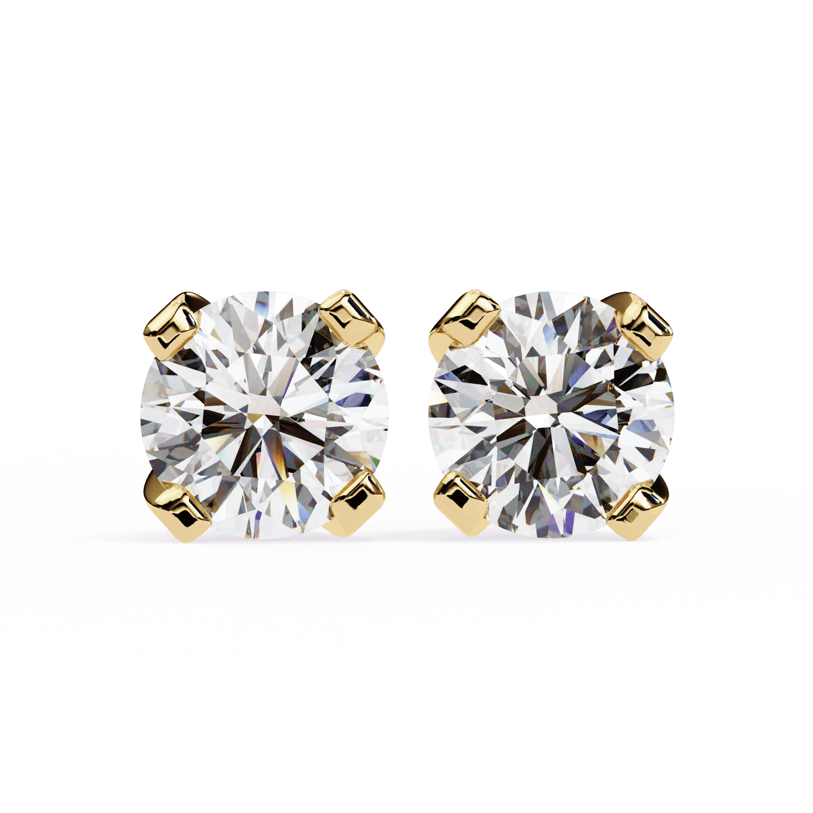Timeless and elegant, these classic round brilliant cut diamond stud earrings are a must-have jewelry essential. Expertly crafted gold, each earring features a sparkling diamond set in a secure 4-prong basket, designed to maximize brilliance and light reflection. The simple yet sophisticated design makes them perfect for everyday wear or special occasions. Comfortable and versatile, these studs are an ideal gift for anniversaries, birthdays, or a personal touch of luxury.